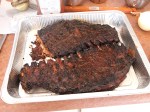 Итак, первым делом — надо снять пленку. На ребрах сзади есть тонкая пленка — она мешает дыму пропитывать мясо. Ее надо поддеть острым предметом, отслоить от самих ребер, а потом просто оторвать, используя, к примеру, бумажное полотенце.