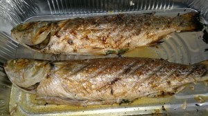 נשטוף את הדגים ונייבש עם מגבת נייר. אחר כך נמרח את פנים הדג עם שמן זית, נמליח ונפלפל. אחר כך נשים פנימה כמה פרוסות שום, ענפי פטרוזיליה, 2-3 גרגירי פלפל אנגלי ו-2-3 פרוסות לימון. אחר כך נמרח את כל הדג בשמן זית.