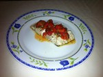 Этап третий — рыба. Ломтики филе смазываем оливковым маслом и чуть подсаливаем. Гриль раскаляем до очень высокой температуры и выкладываем рыбу на сторону шкурки, минут на 5-6. Затем — аккуратно переворачиваем и жарим еще минуты 3-4.