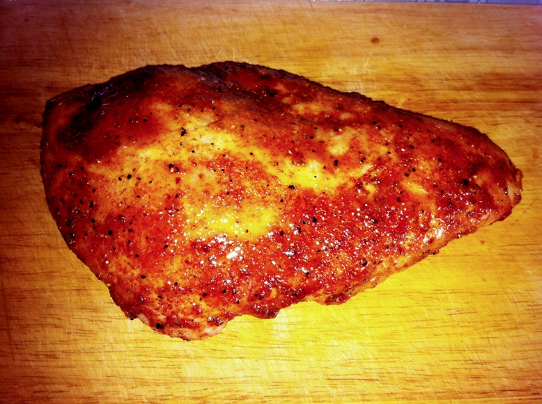 Для начала — смешиваем горчицу с 3-мя чайными ложками оливкового масла и обмазываем этой адской смесью грудинку.