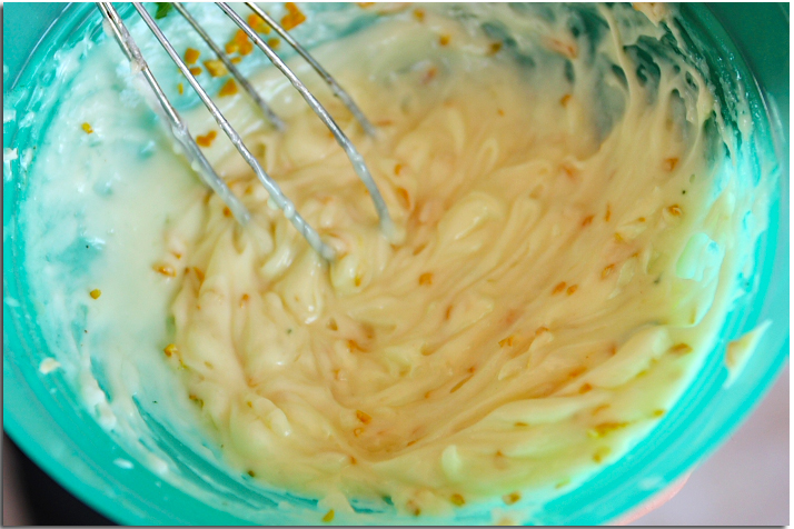 Глазурь готовится до смехотворного просто — даем сливочному маслу постоять в комнатной температуре, пока не станет мягким (но не растопленным!), и затем смешиваем с лимонным и апельсиновым соком , солью и черным перцем. Для пущего эффекта можно добавить немного апельсиновой цедры. Вот и все!