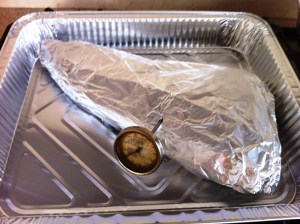 После чего оборачиваем мясо пергаментом, а затем — фольгой. Вот так вот это выглядит: