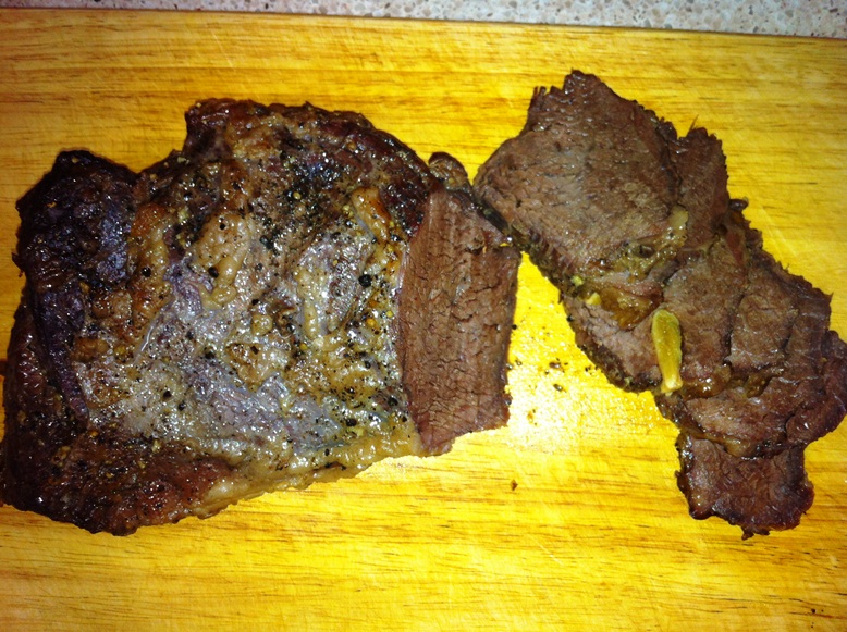 - 1 отруб оконечности (верхняя часть) костреца. Этот отруб называется по-английски tri tip. Треугольная оконечность мышцы, которая называется rump (кострец, или шайтель, на иврите). Очень насыщенный вкусом кусок мяса весом где-то 1.3 — 1.5 кг.