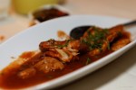 Как я уже говорил, ресторан «А-Сукка а-Левана» – ресторан все же восточный. Вы не найдете в меню блюд, соответствующих классическому определению «гурме». Здесь упор делается именно на то, чтоб, как говорится, наесть до отвала каждого. Поэтому, к примеру, первым делом вам на стол поставят около 10-ти видов разных салатов и закусок. При заказе основного блюда все это изобилие уже включено в цену. Величина порций тоже соответствующая. Если честно, на мой взгляд, такая порция вполне способна накормить и двоих. Кстати, когда я был в ресторане, неподалеку от меня за столом заказали комплекс-плату морепродуктов на четверых. Скажу вам честно, они вчетвером с этой горой морепродуктов управились с большим трудом.