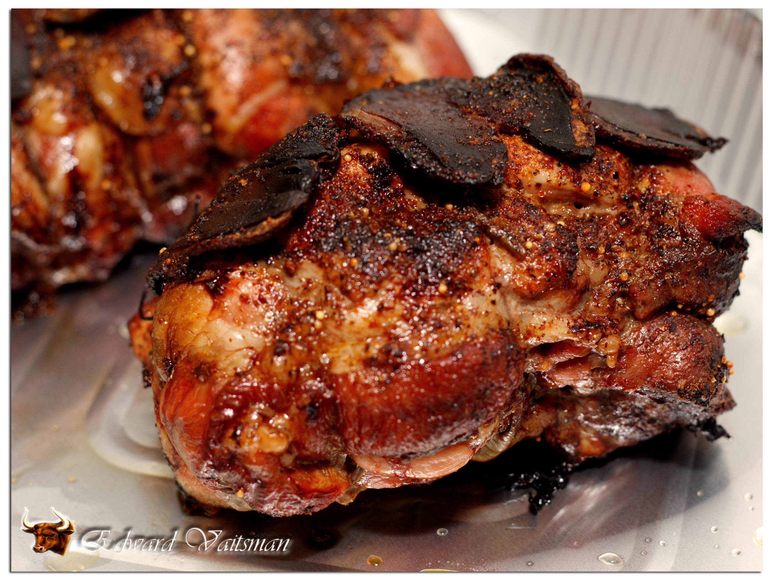 Сказать по-честному, я слегка слукавил… В классическом варианте это блюдо готовят из свиной лопатки, которую коптят в течении 8-9 часов на очень медленном огне, а потом подают разодранной на кусочки (на манер шаурмы) с острым соусом барбекю в булочках для гамбургеров.