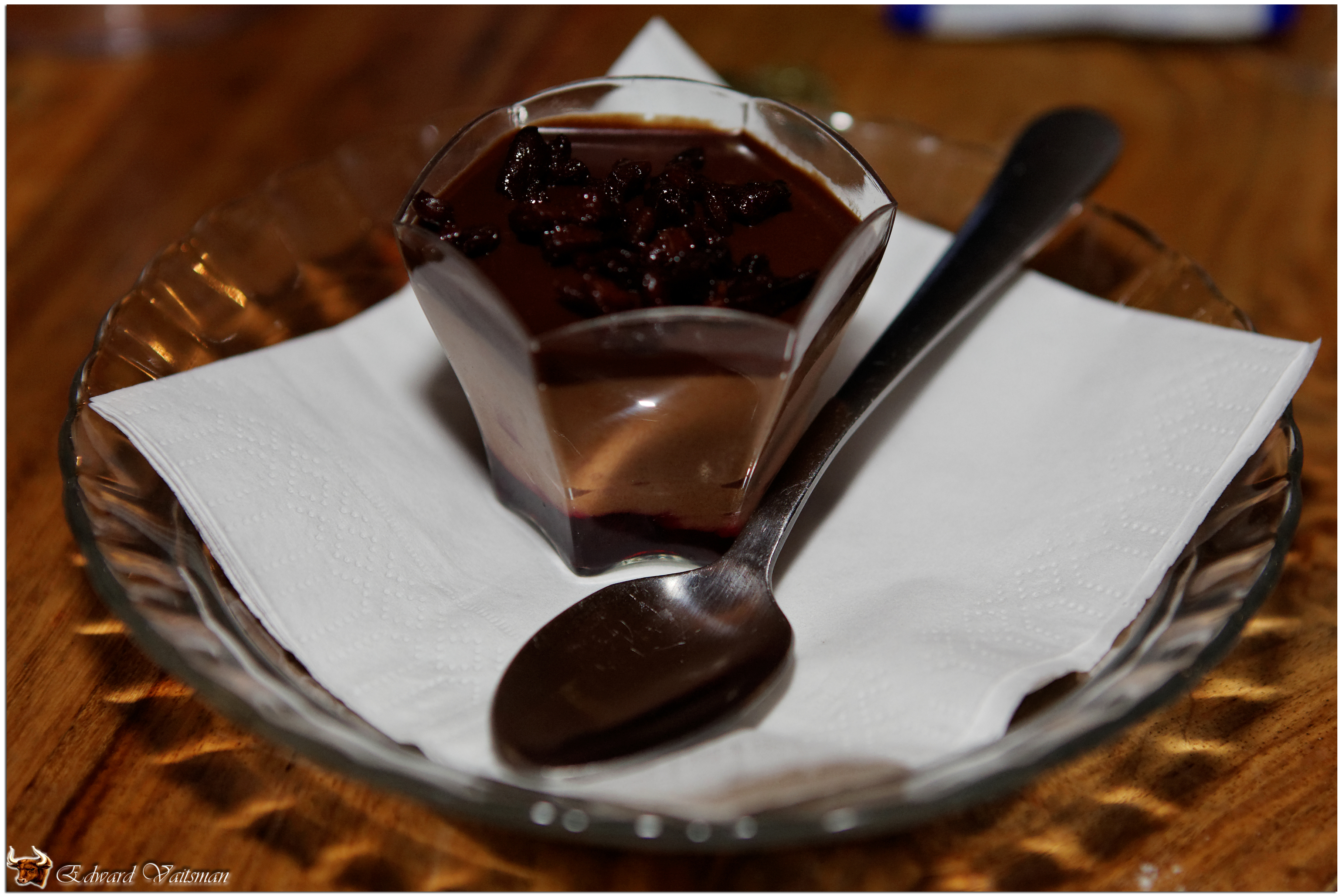 А на десерт нам подали вот такой шоколадный мусс с лесными ягодами.